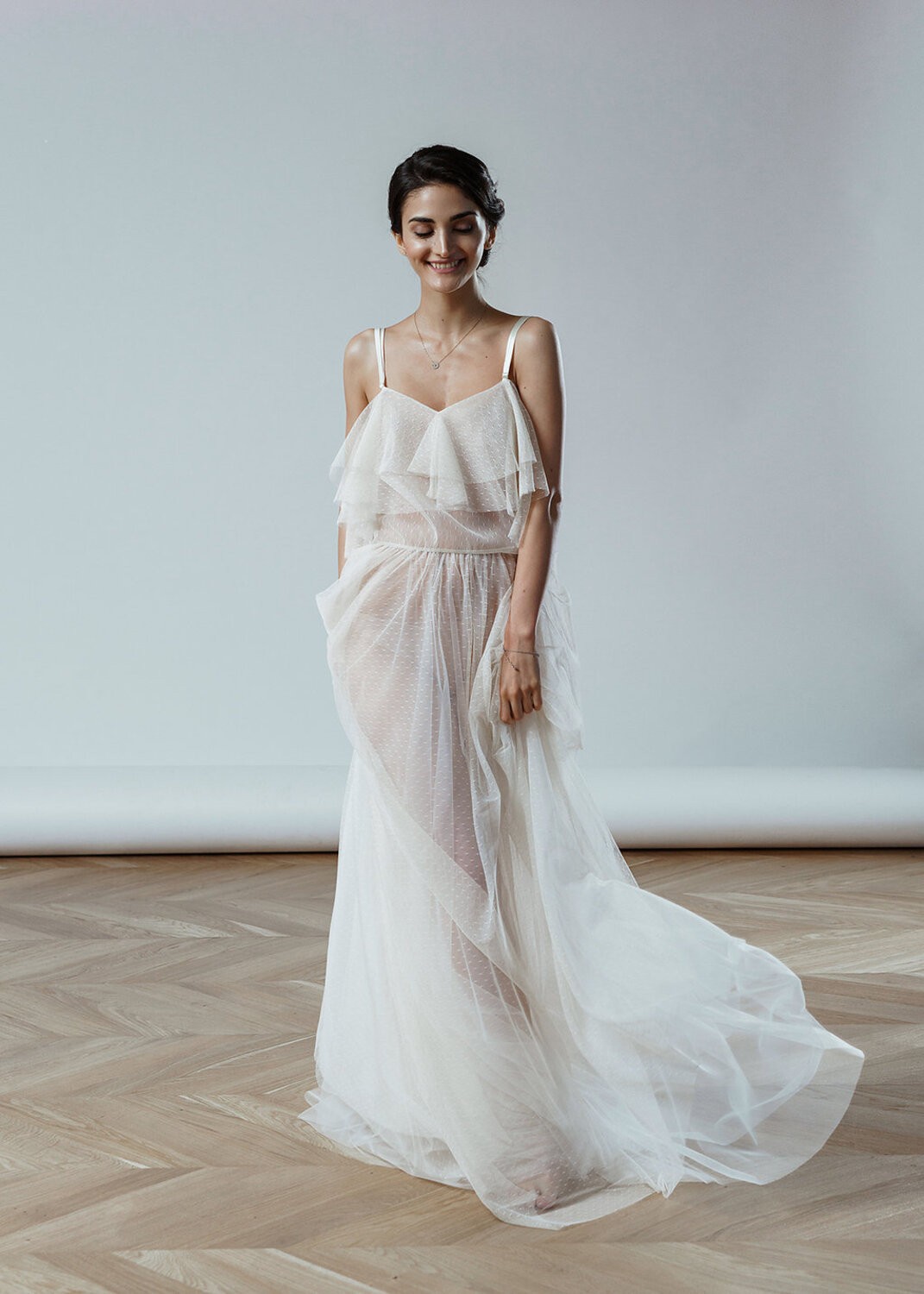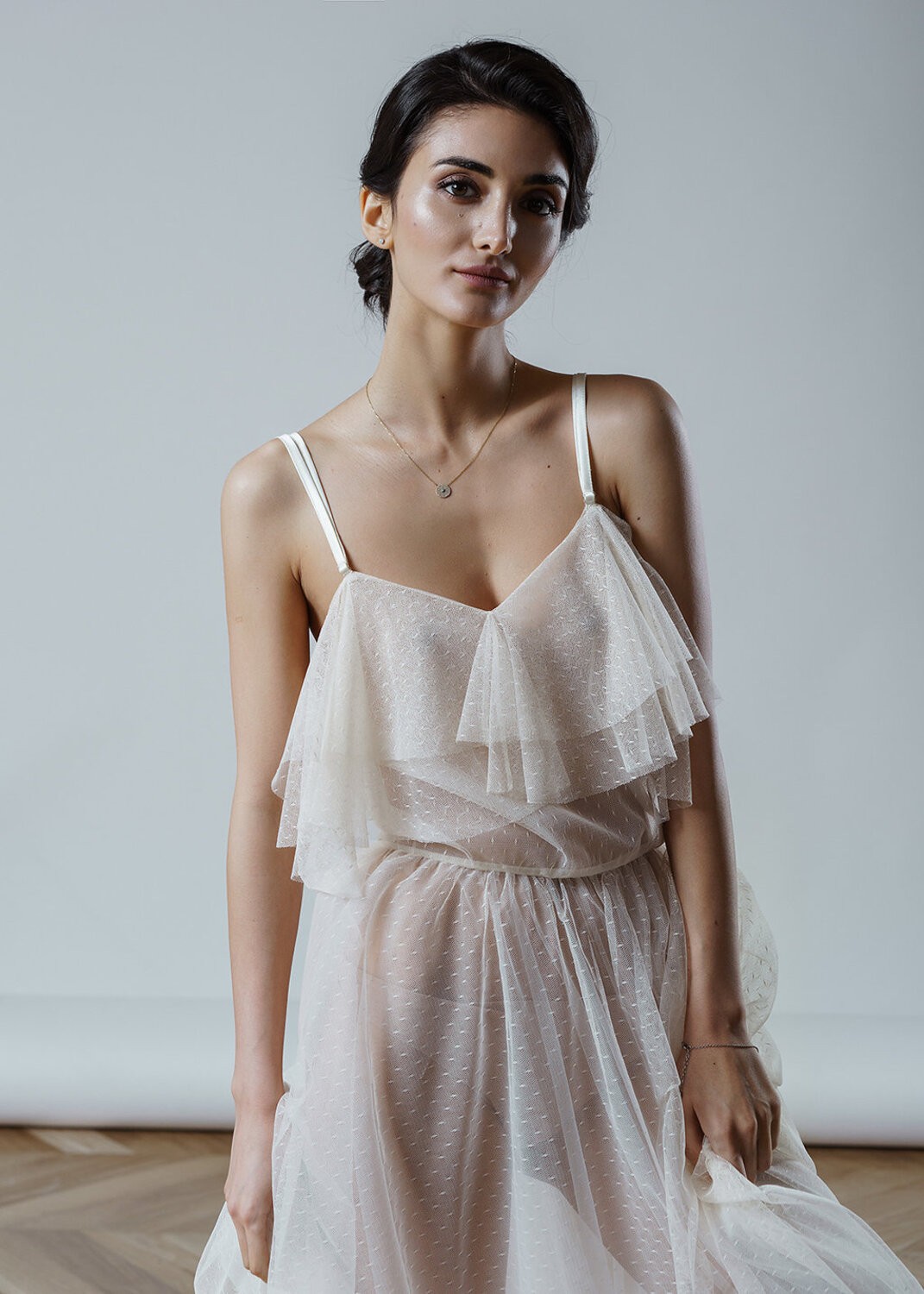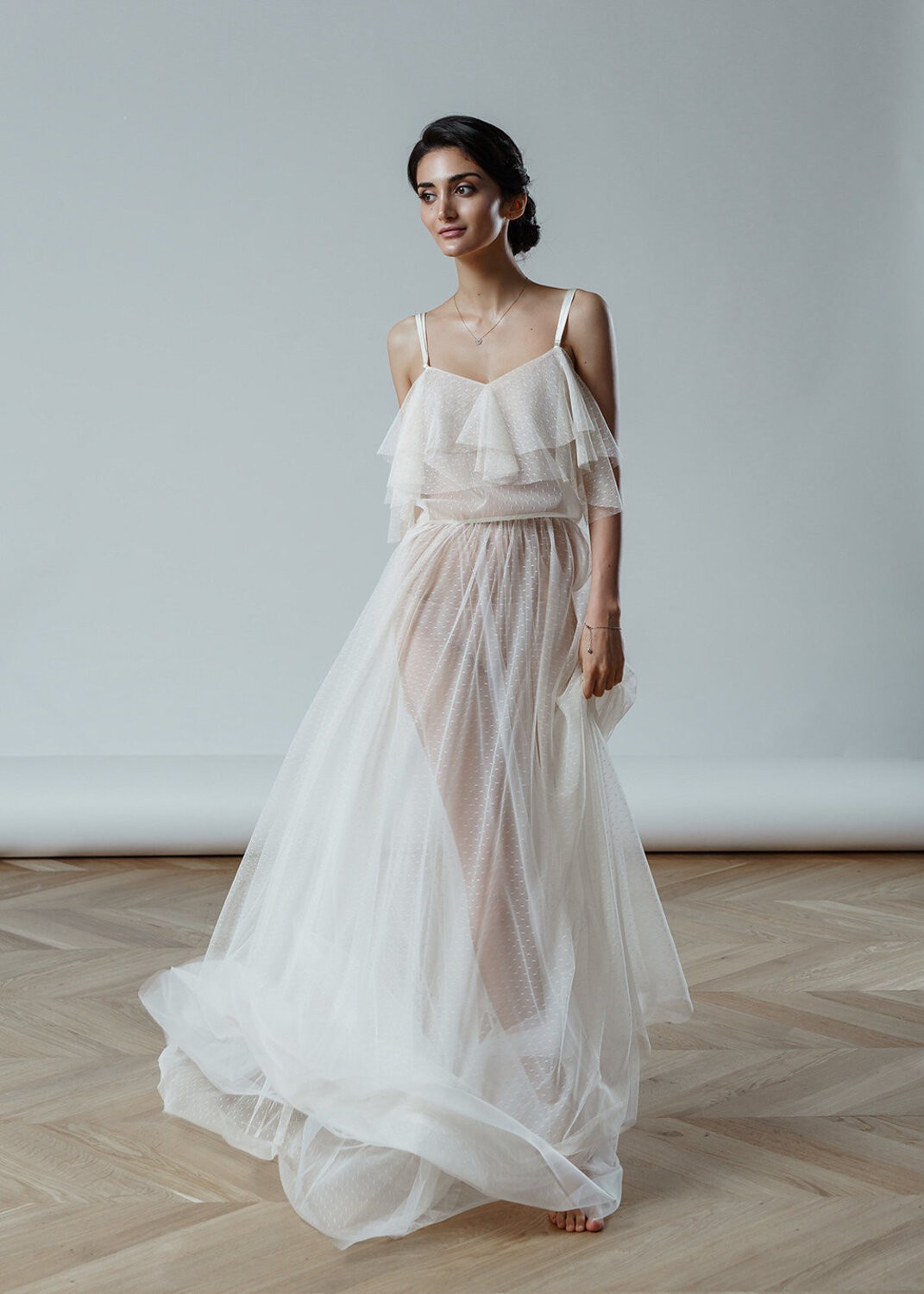 Dress in the style of “Boho”. Made of mesh and tulle in a milky color.