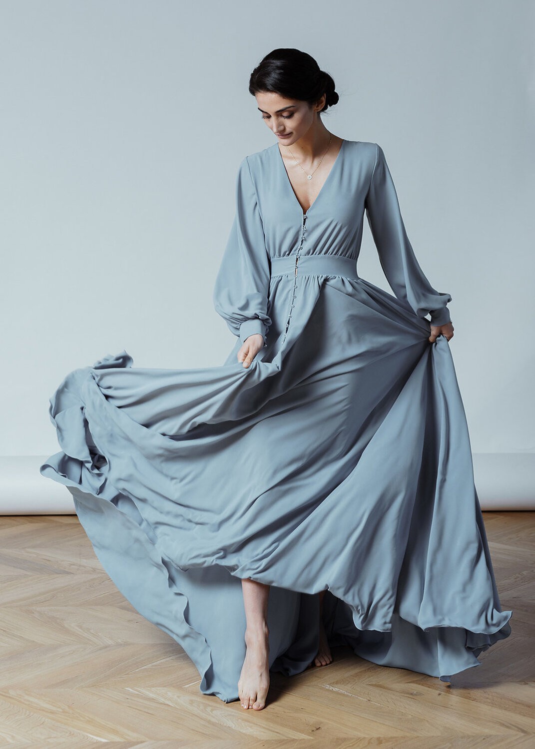 This and other dresses you can try on in our showroom and sew to order by measurements or in standard size with any changes.
