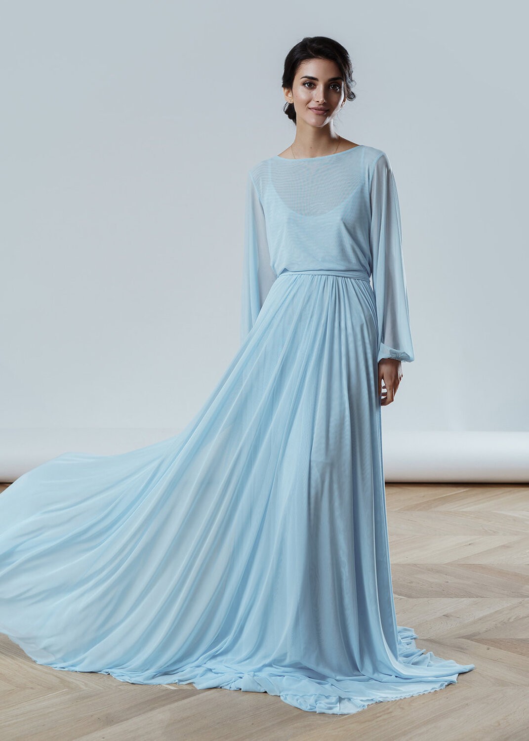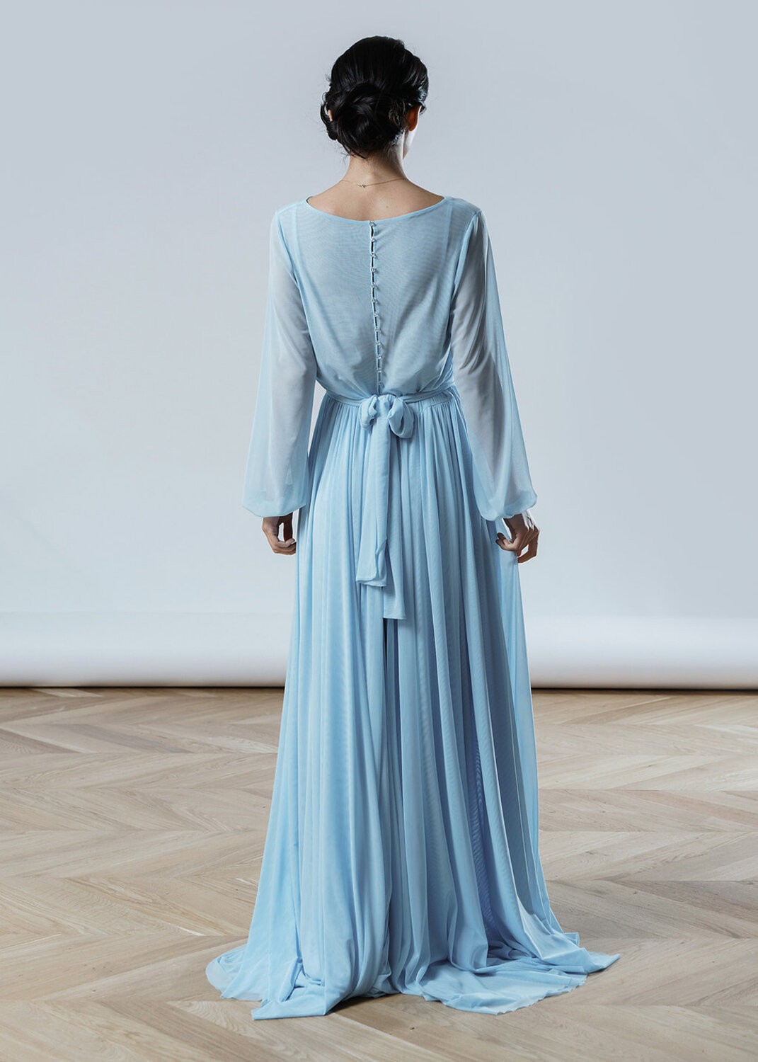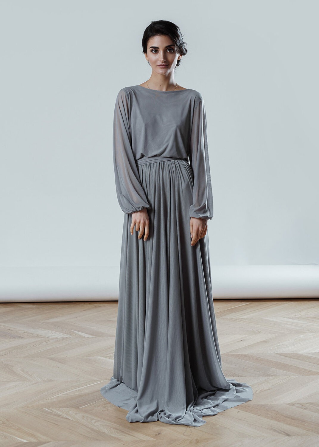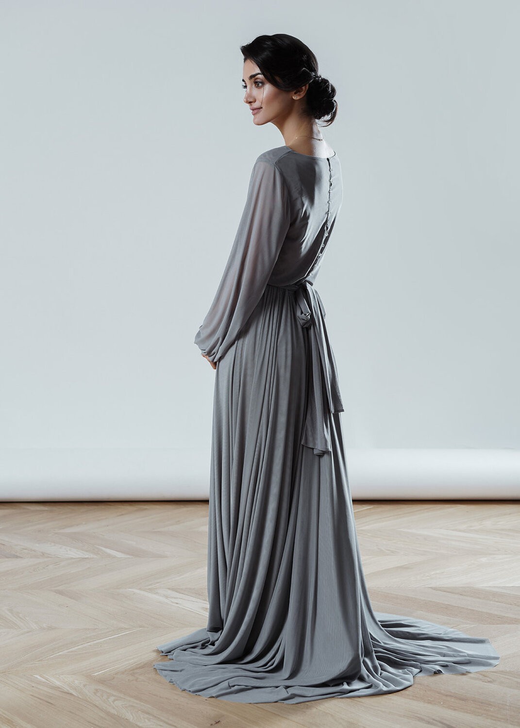 This and other dresses you can try on in our showroom and sew to order by measurements or in standard size with any changes.