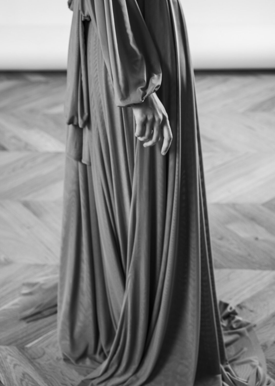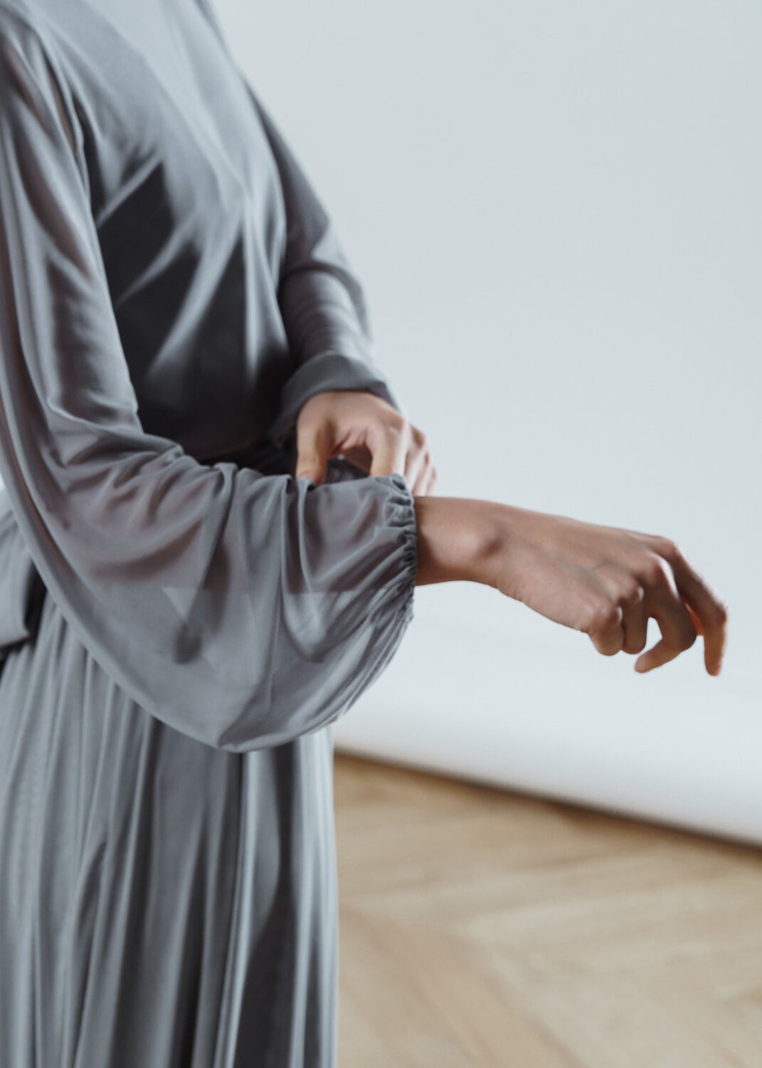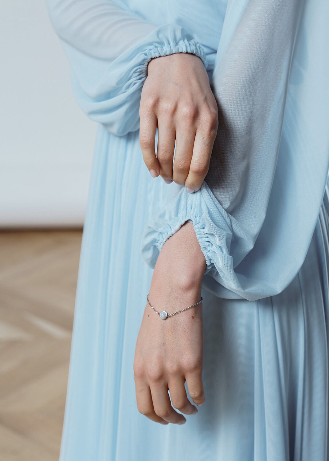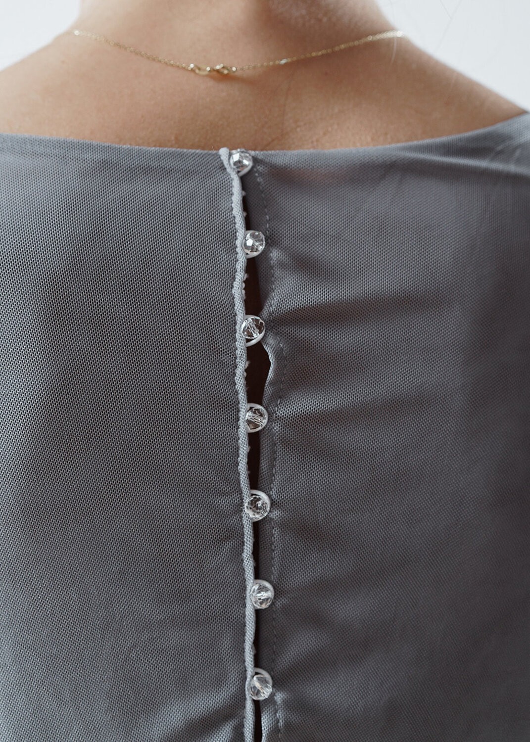 The upper dress is made of Italian mesh, the lower dress is made of satin.