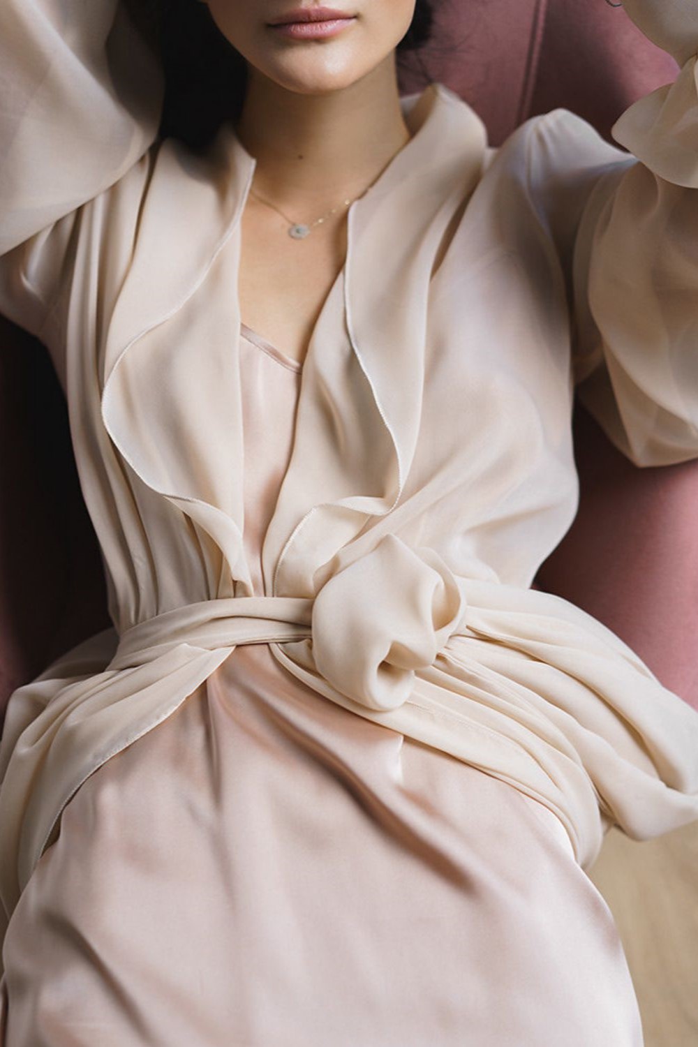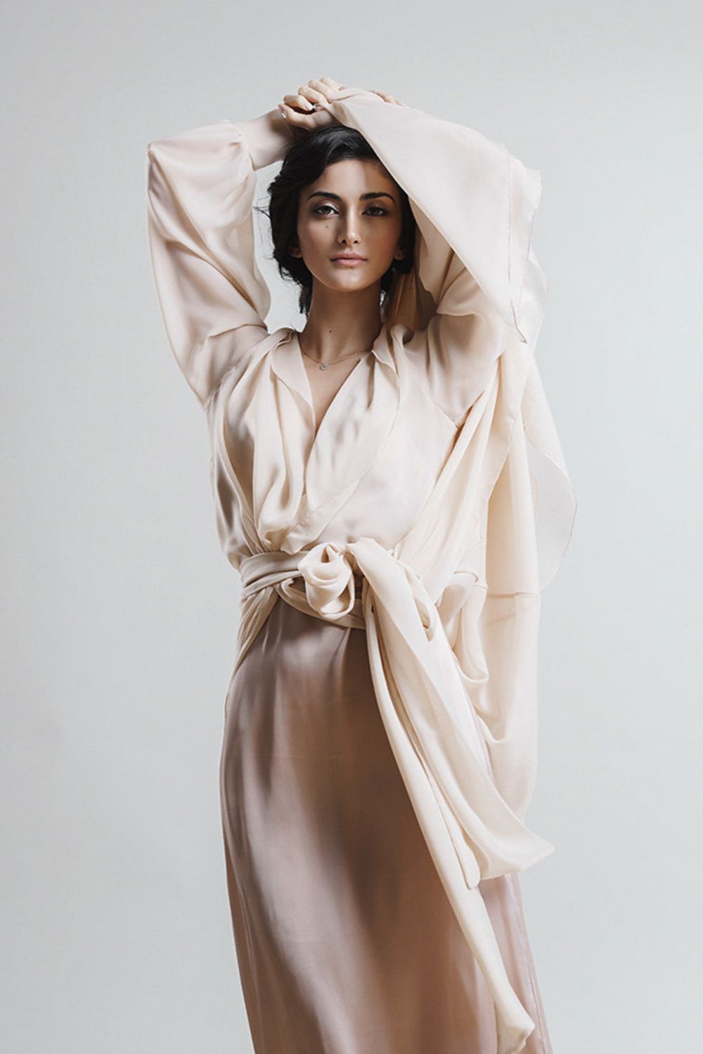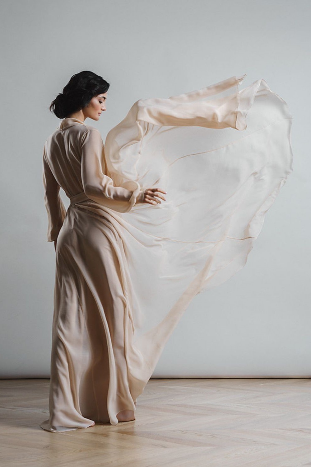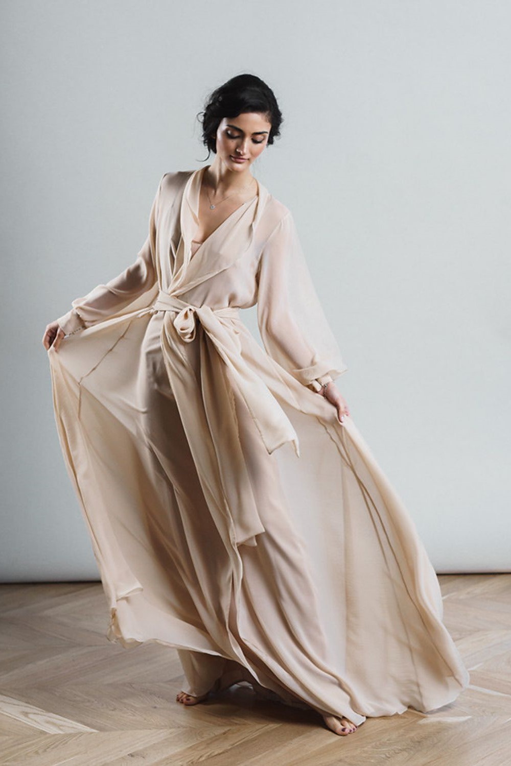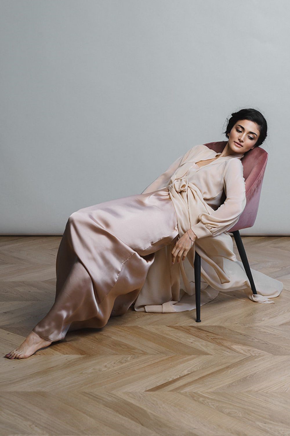 The set is made of silk.chiffon and armani satin. The color of the product can be changed.