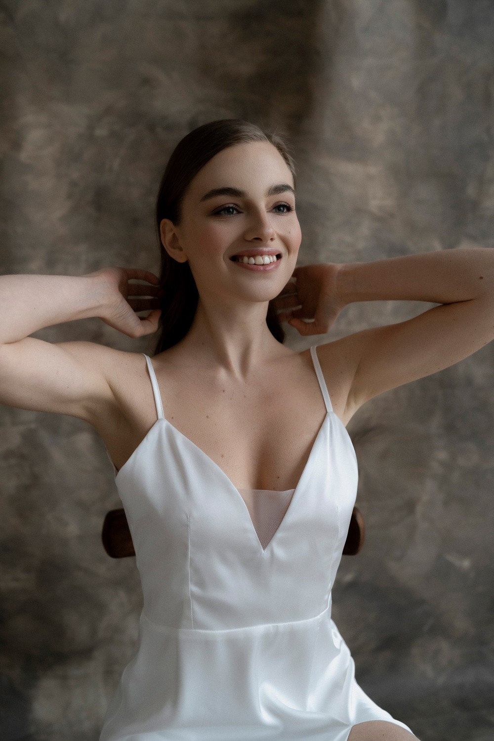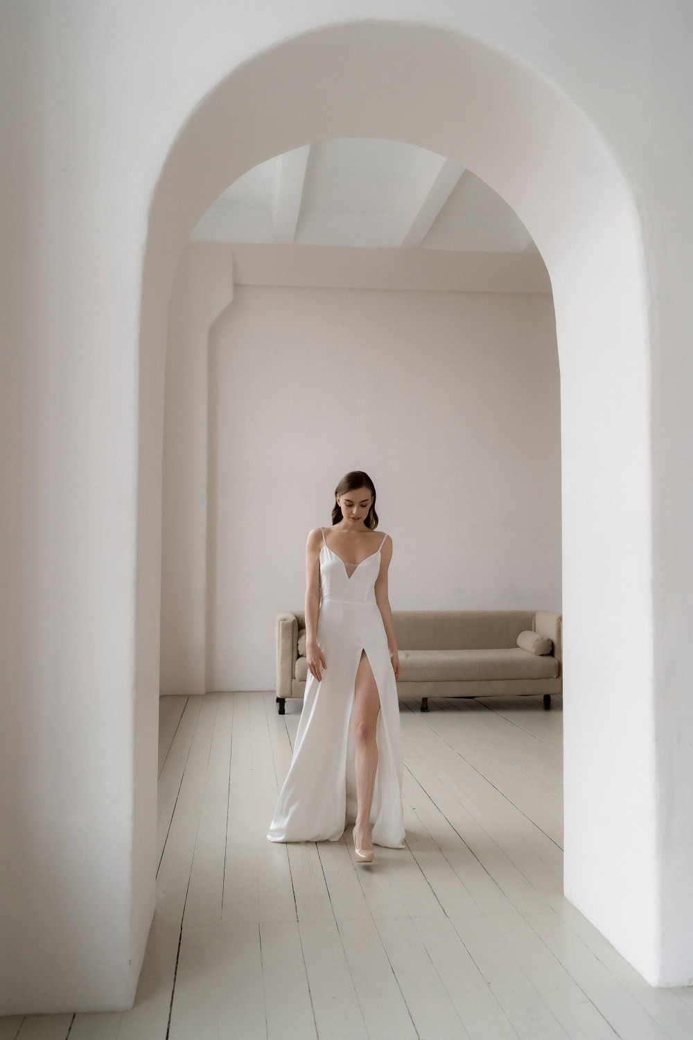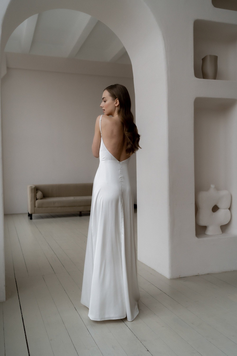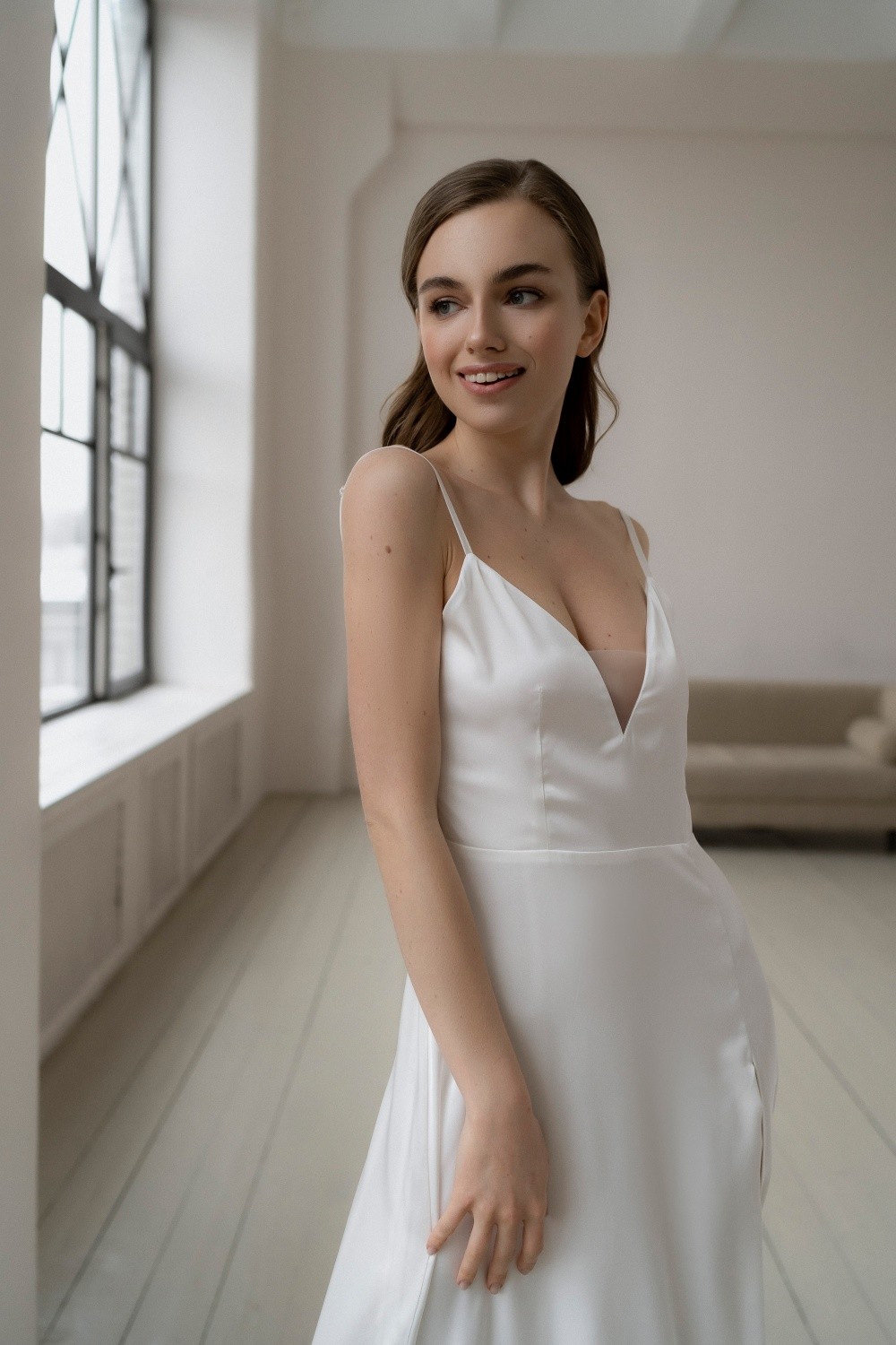 The Dress Ada with a slit, made of satin.