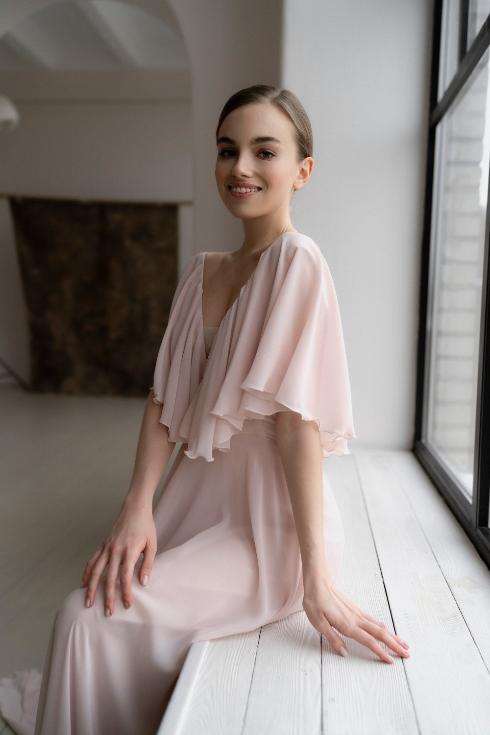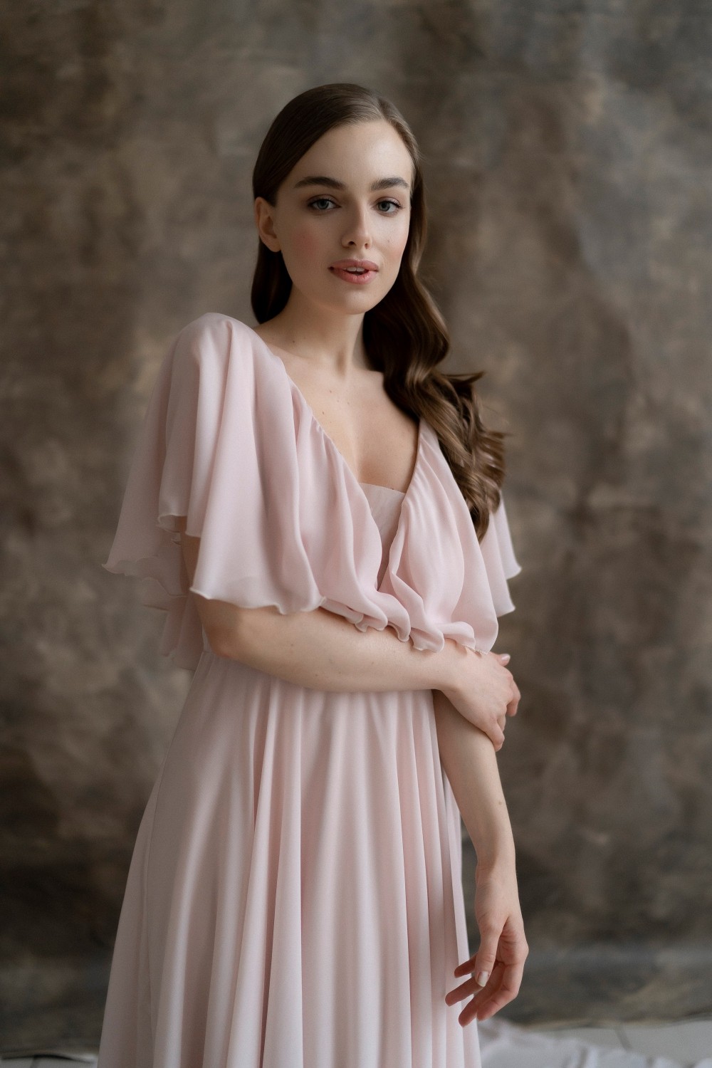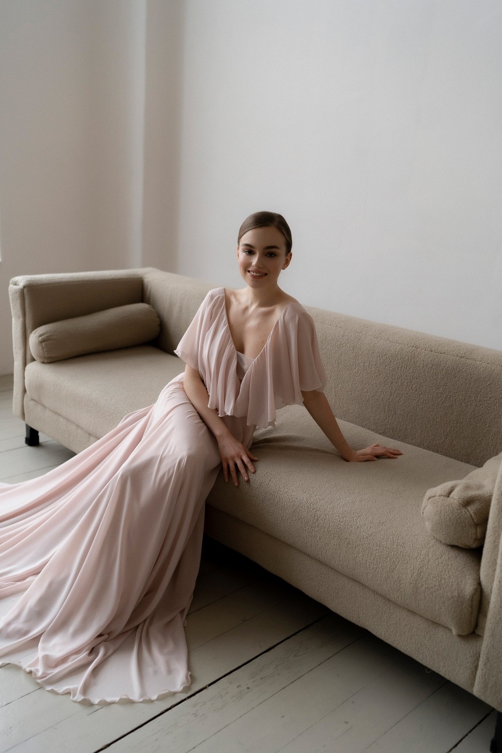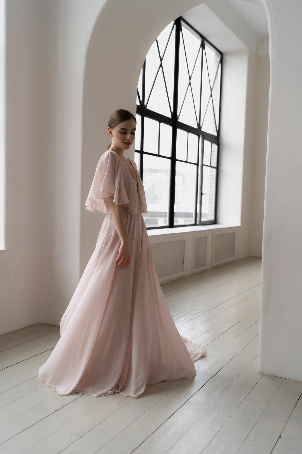 The wedding dress Berta is made of chiffon in powdery pink color.
