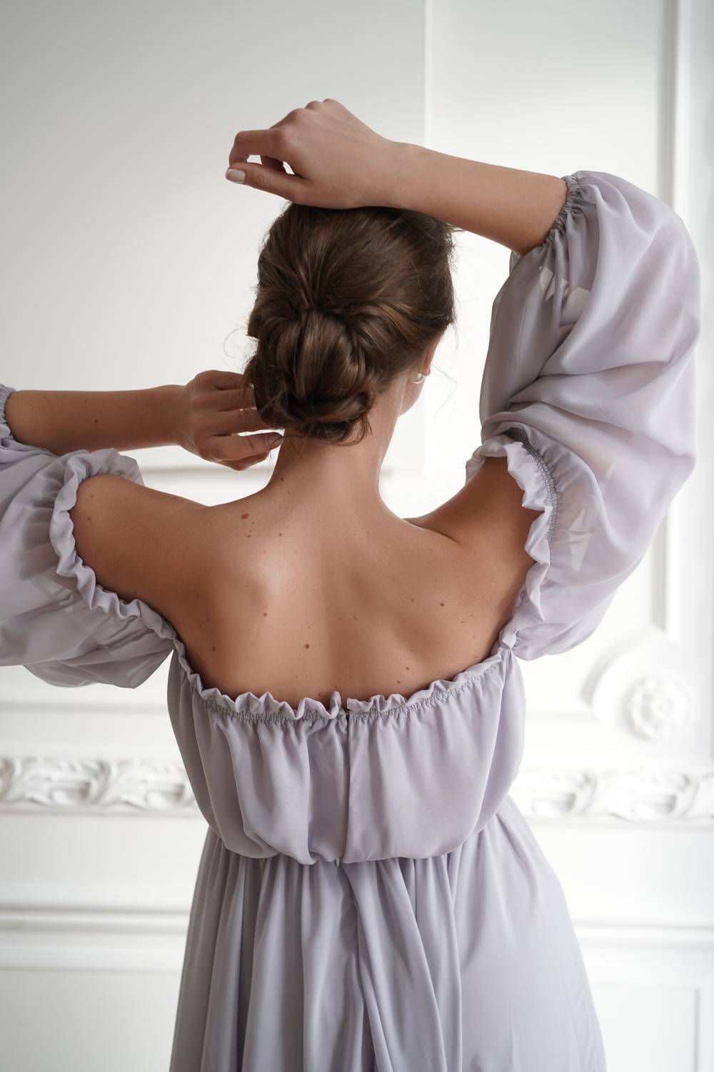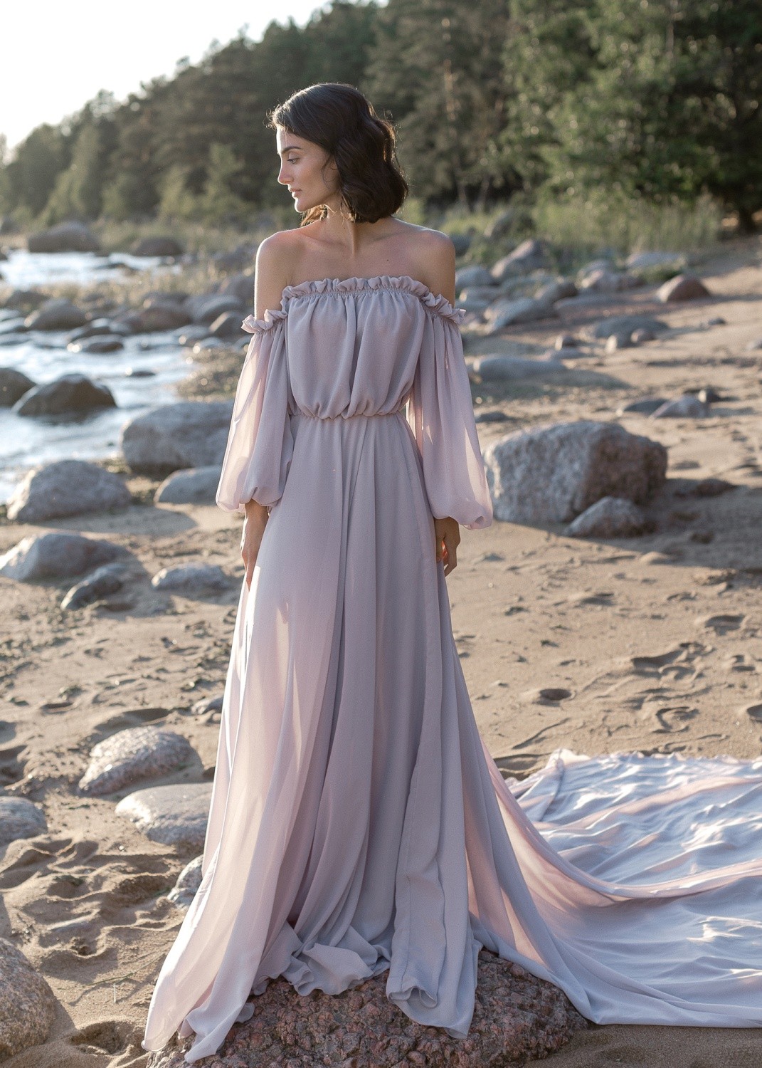 Delicate wedding dress, made of airy chiffon. The dress can be ordered in a standard size or sewn to measure.