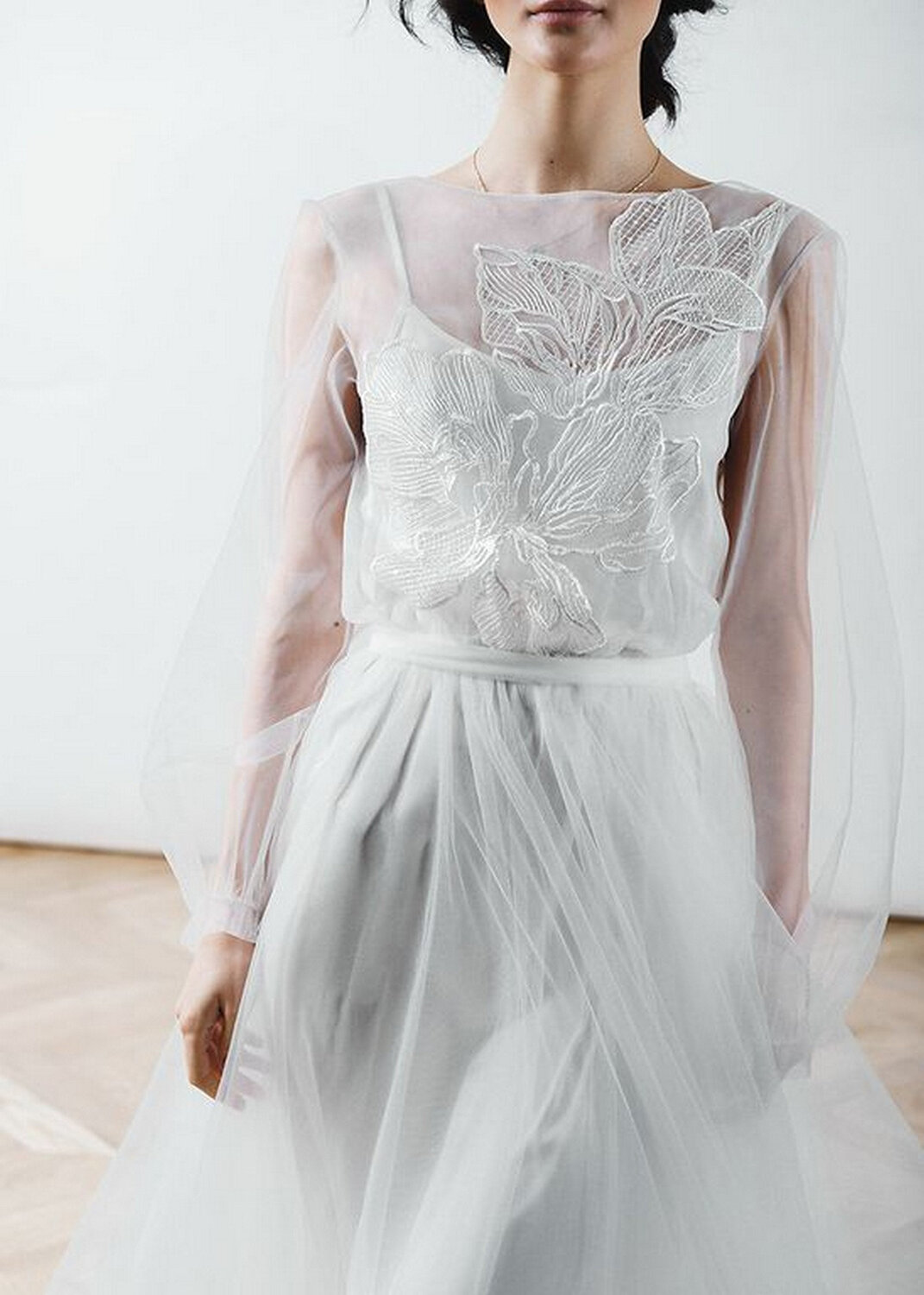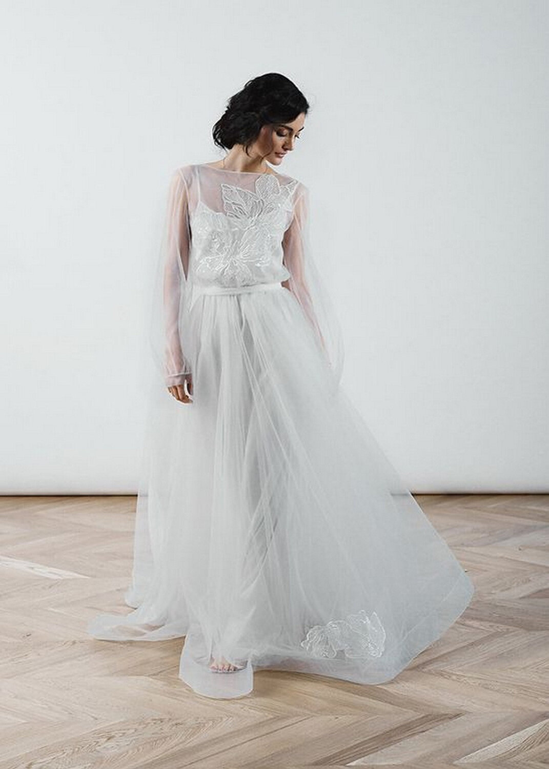 Delicate and airy transformer dress in ivory color, consisting of two parts.