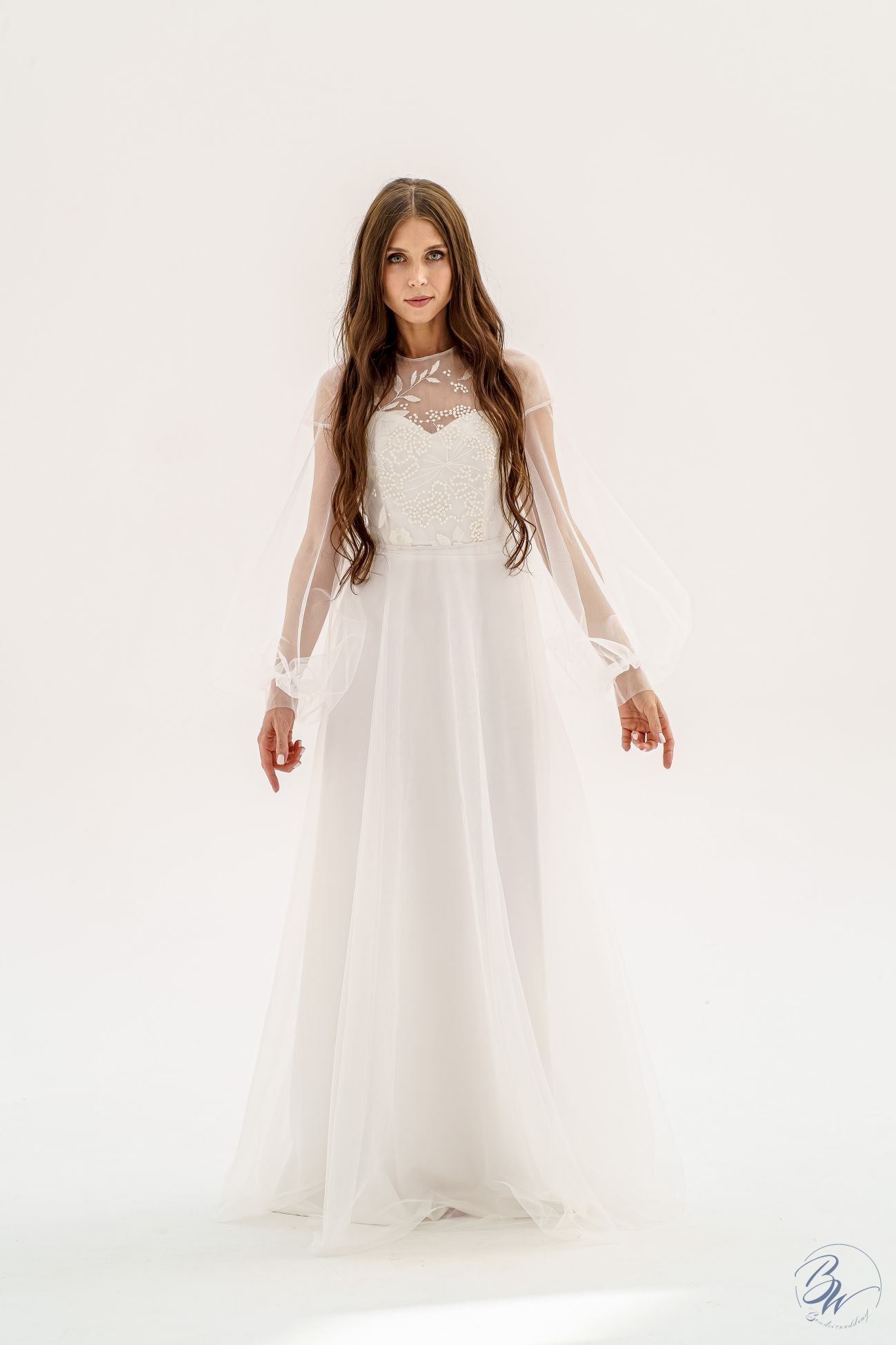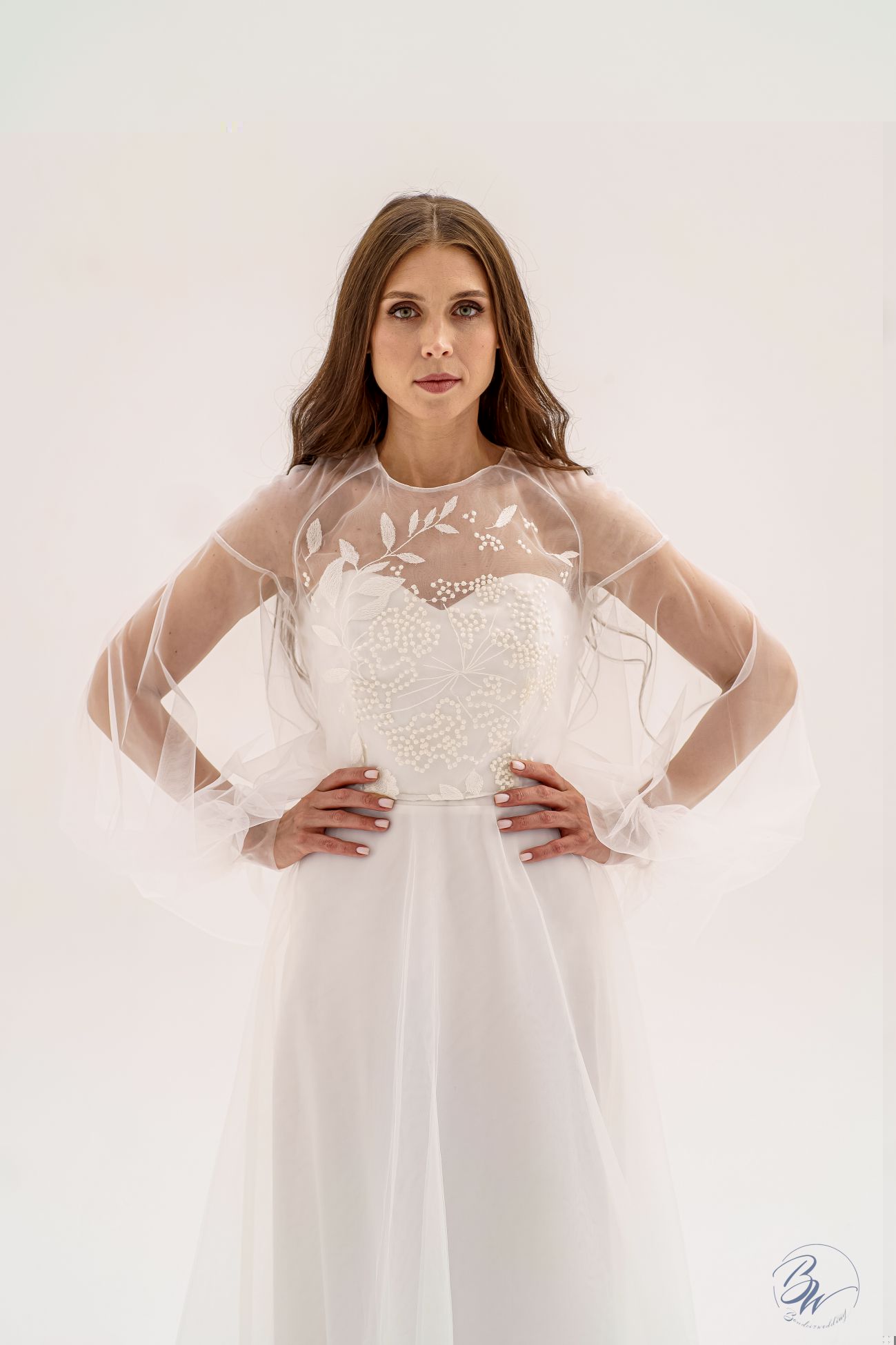The Iris wedding dress made of tulle and chiffon is a true fashion masterpiece, which attracts the eye with its elegance and romantic beauty. It is created to make every bride feel like a real princess on the most special day of her life.