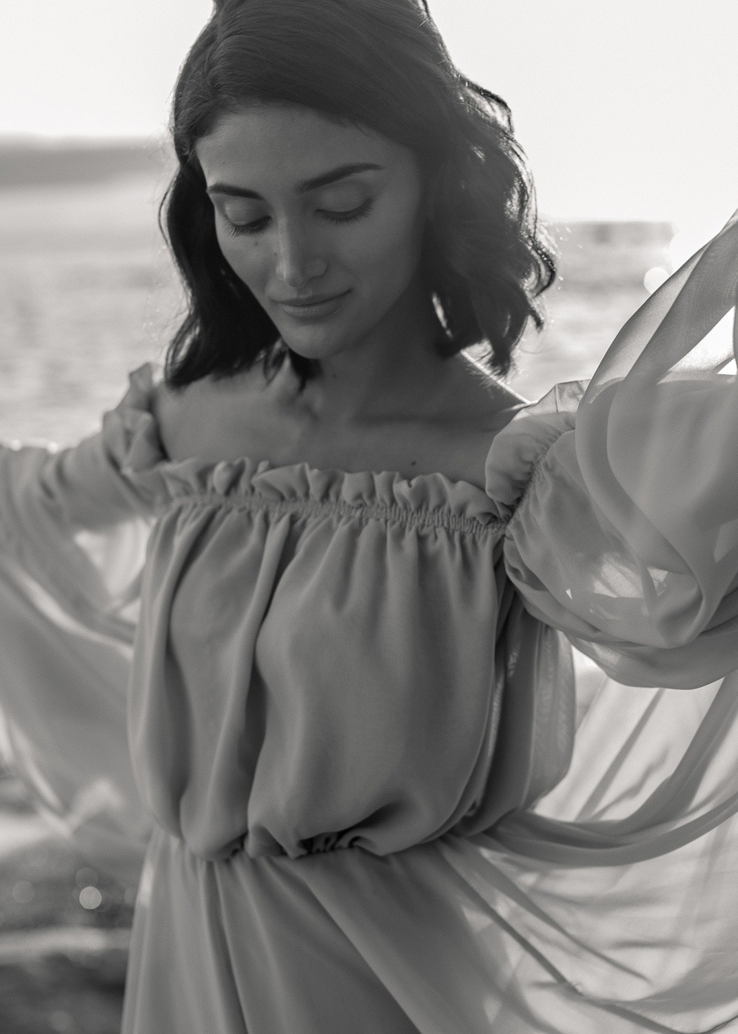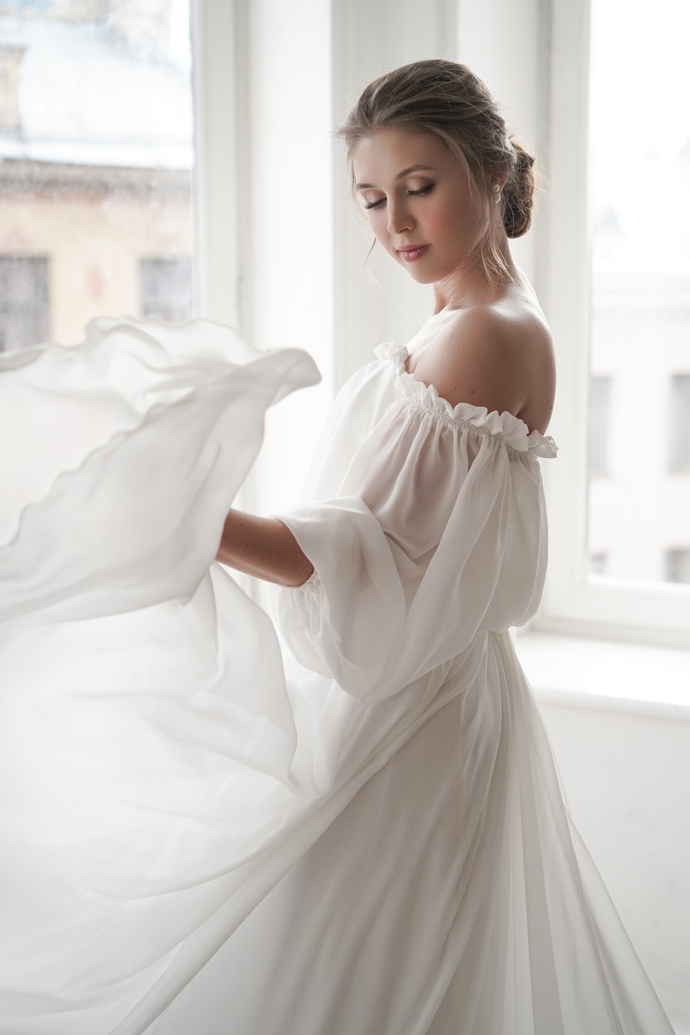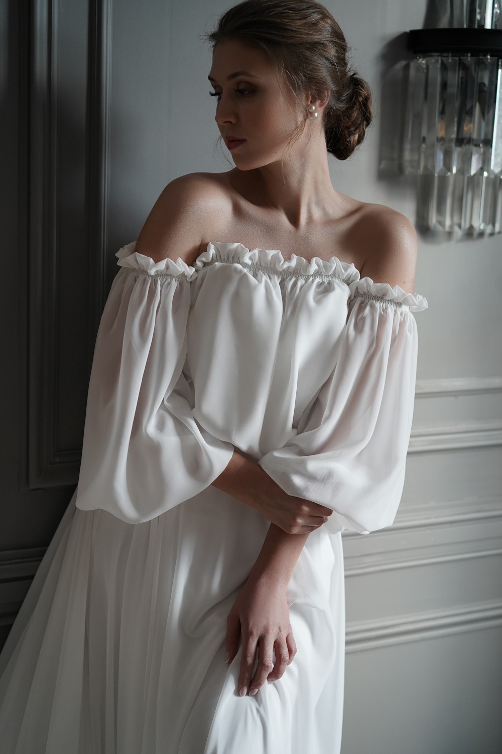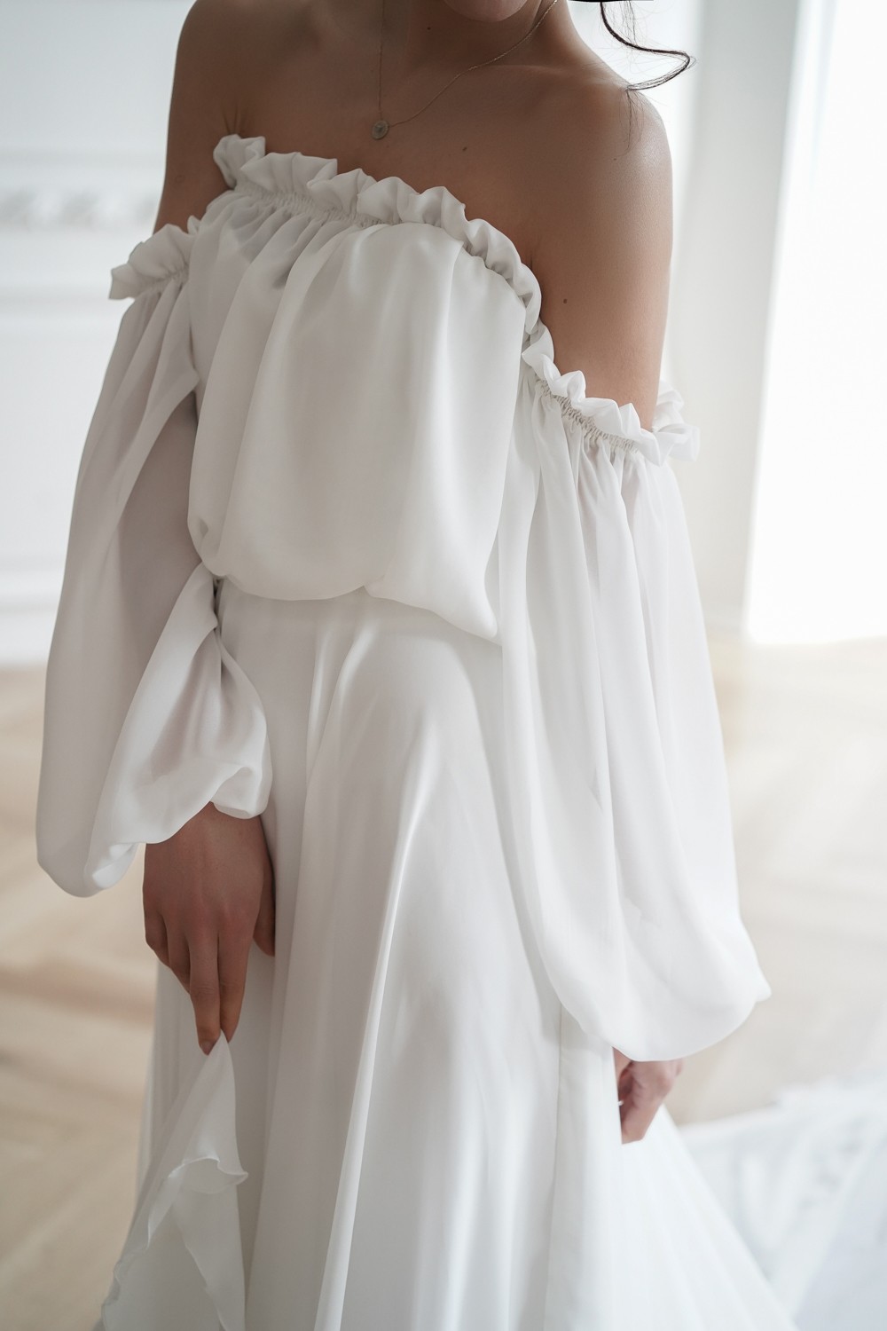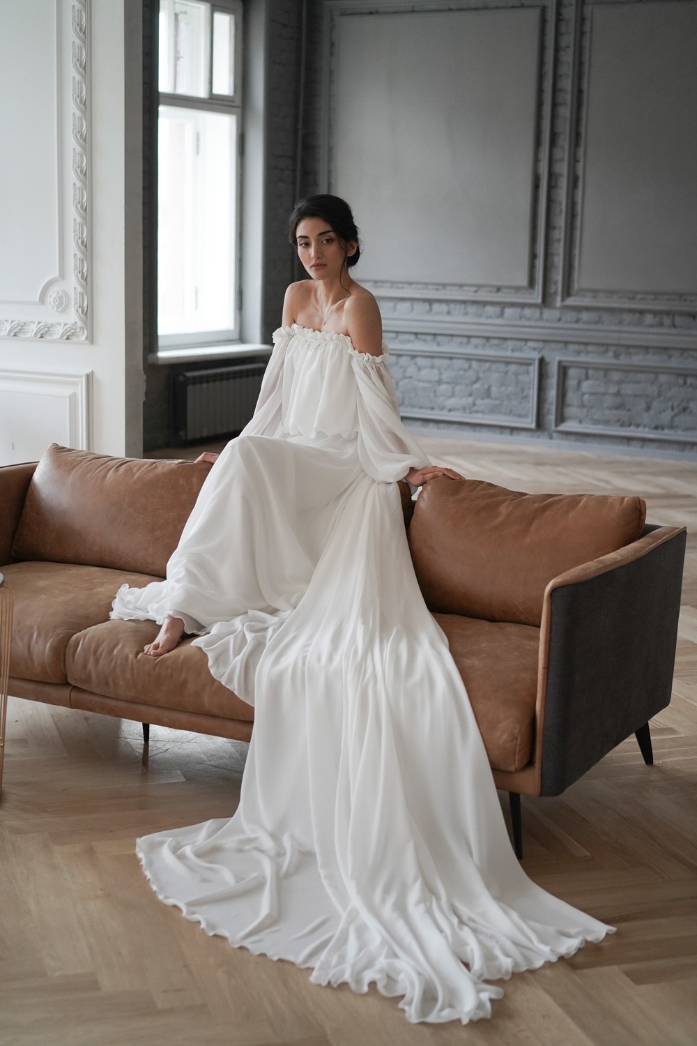 Delicate wedding dress, made of airy chiffon. The dress can be ordered in a standard size or sewn to measure.